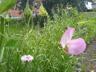Gå ner och titta på odlingarna! Det växer jättefint och MYCKET.